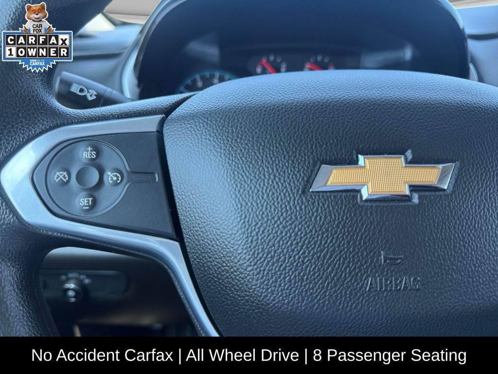 1-845-374-6555 CALL NOW FOR INSTANT VIP SERVICE Floor Liner Package (LPO) (1st & 2nd Row All-Weather Floor Liner (LPO), 3rd Row All-Weather Floor Liner (LPO), and Integrated Cargo Liner (LPO)), Front License Plate Bracket Mounting Package, Preferred Equipment Group 1LS, 3.49 Axle Ratio, 3rd row seats: split-bench, 4-Wheel Disc Brakes, 6 Speakers, 8-Passenger Seating (2-3-3 Seating Configuration), ABS brakes, Air Conditioning, Alloy wheels, AM/FM radio, Apple CarPlay/Android Auto, Automatic temperature control, Brake assist, Bumpers: body-color, Compass, Custom Molded Front & Rear Splash Guards (LPO), Delay-off headlights, Driver door bin, Driver vanity mirror, Dual front impact airbags, Dual front side impact airbags, Electronic Stability Control, Emergency communication system: OnStar and Chevrolet connected services capable, Four wheel independent suspension, Front anti-roll bar, Front Bucket Seats, Front Center Armrest, Front dual zone A/C, Front reading lights, Fully automatic headlights, Heated door mirrors, High-Intensity Discharge Headlights, Illuminated entry, Low tire pressure warning, Occupant sensing airbag, Outside temperature display, Overhead airbag, Overhead console, Panic alarm, Passenger door bin, Passenger vanity mirror, Power door mirrors, Power steering, Power windows, Premium Cloth Seat Trim, Radio data system, Radio: Chevrolet Infotainment System AM/FM Stereo, Rear air conditioning, Rear anti-roll bar, Rear reading lights, Rear window defroster, Rear window wiper, Remote keyless entry, Security system, Speed control, Speed-sensing steering, Split folding rear seat, Spoiler, Steering wheel mounted audio controls, Tachometer, Telescoping steering wheel, Tilt steering wheel, Traction control, Trip computer, Variably intermittent wipers, Voltmeter, and Wheels: 18" Bright Silver Painted Aluminum.