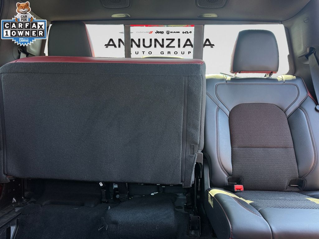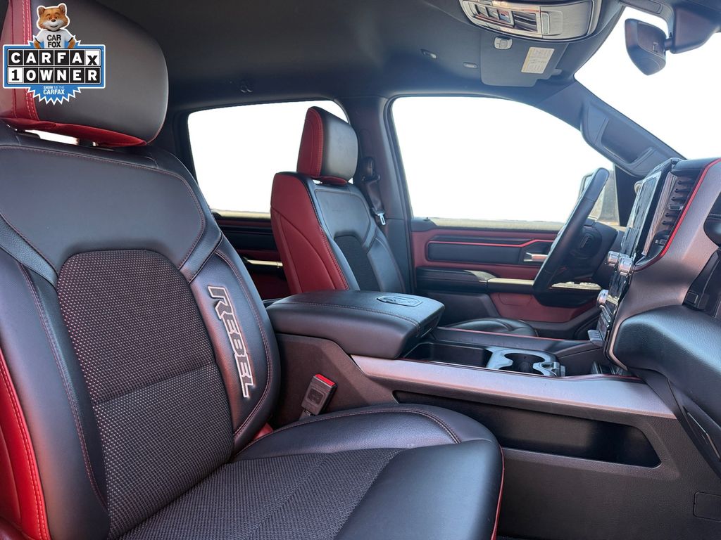 The cabin of this Rebel is packed with premium features that will elevate your driving experience, including 10 speakers, a 12.0" Uconnect 5 Nav display, wireless charging, and a host of advanced safety and convenience technologies. The Rebel's off-road-focused design, with features like all-terrain tires, skid plates, and a locking rear differential, ensures that you're ready to tackle any adventure.